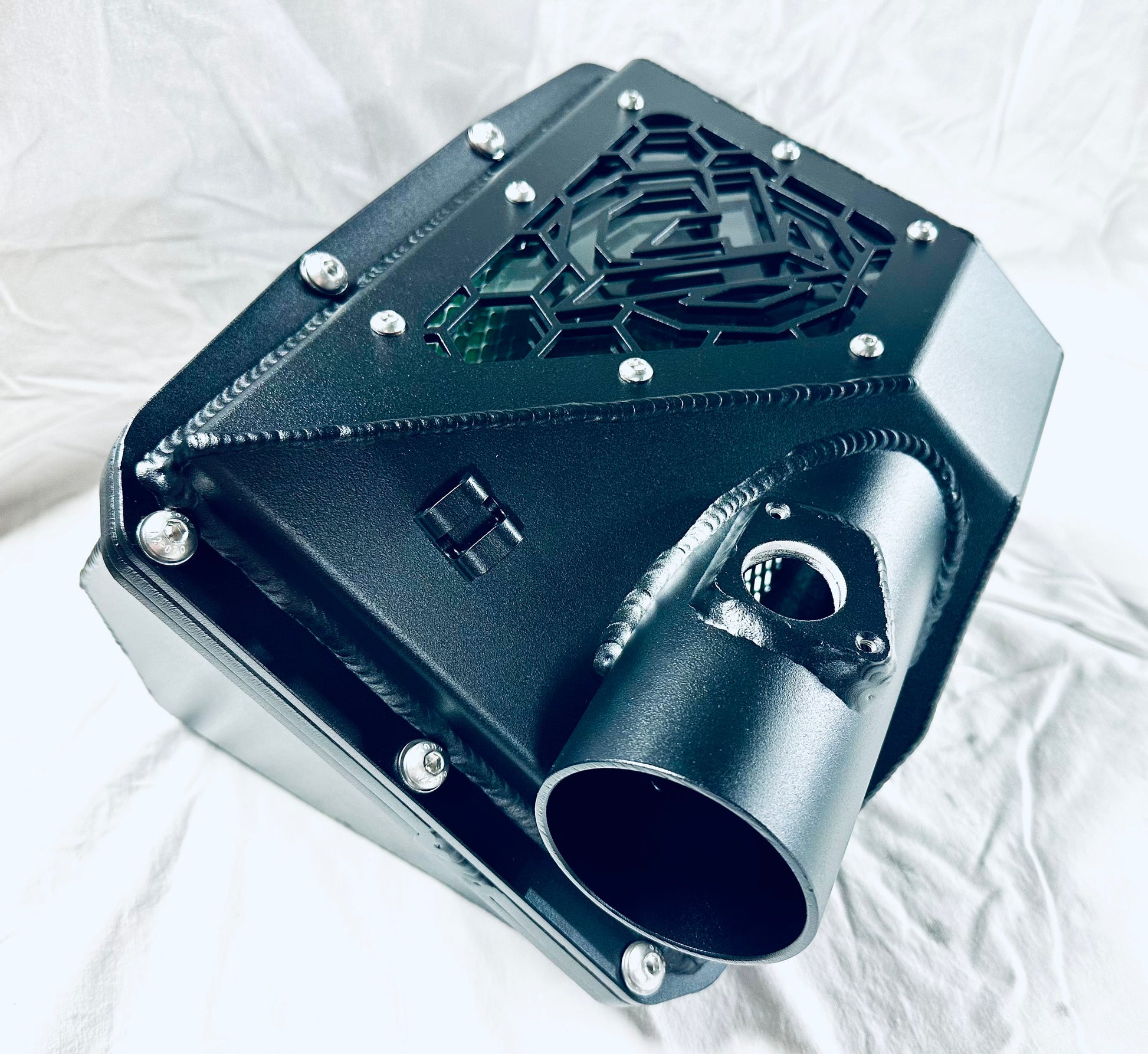 Made from strong ally material with a CNC acrylic viewing panel on the lid, complete with our logo laser cut into the lid, this airbox not only looks great but also improves engine performance. Say goodbye to restrictions and hello to better airflow!